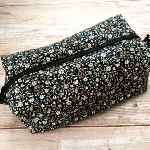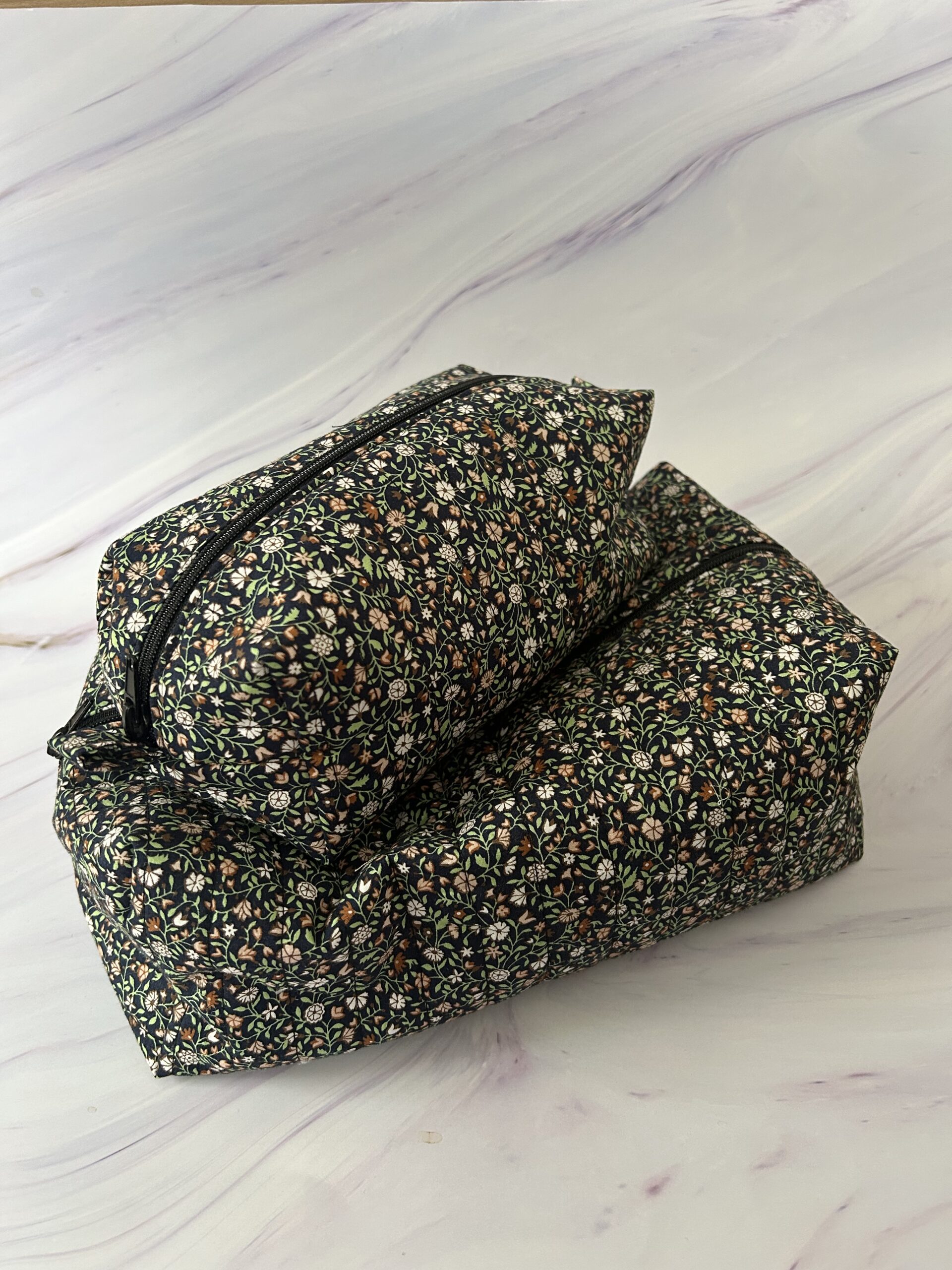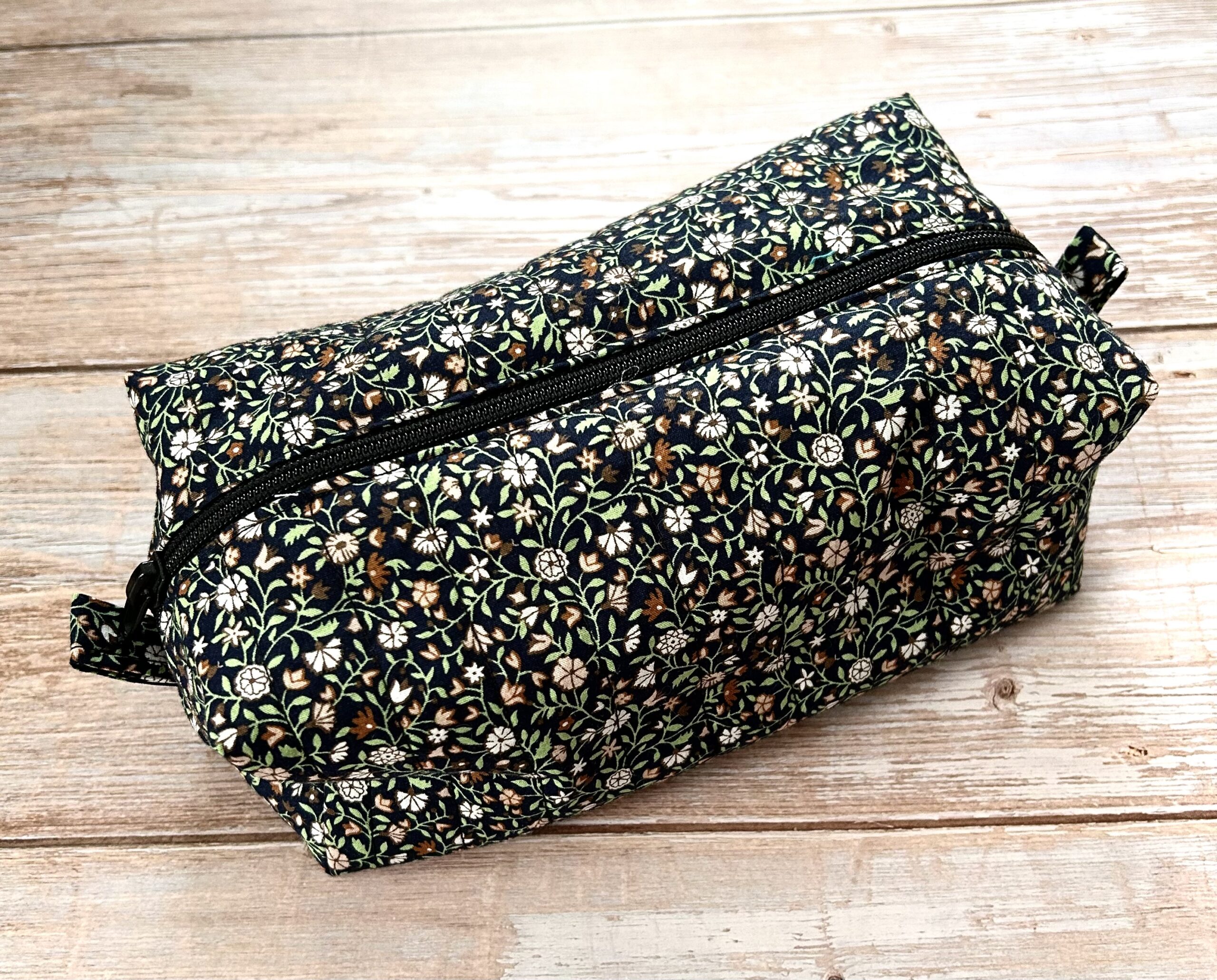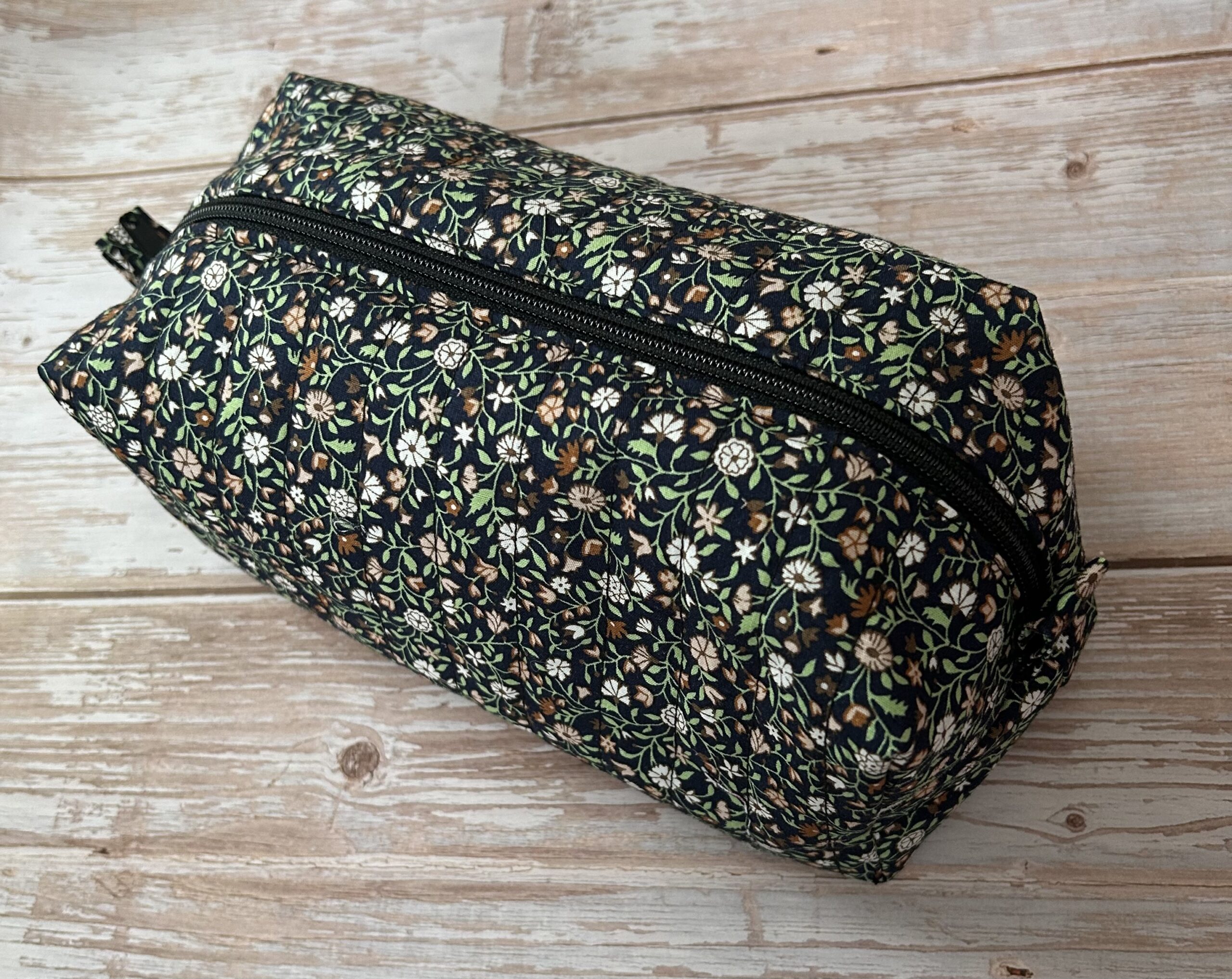 Rohelistes toonides lilleline kosmeetikakott. Kott on valmistatud puuvillasest kangast, sees ühevärviline vooder. Koti mõõdud ca 19x9cm, kõrgus 9cm.