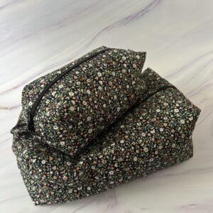Rohelistes toonides lilleline kosmeetikakott. Kott on valmistatud puuvillasest kangast, sees ühevärviline vooder. Koti mõõdud ca 19x9cm, kõrgus 9cm.