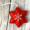Punane vildist täheke on kaunistatud valge tikandiga. Vildist jõuluehted on valmistatud Eestis käsitööna.